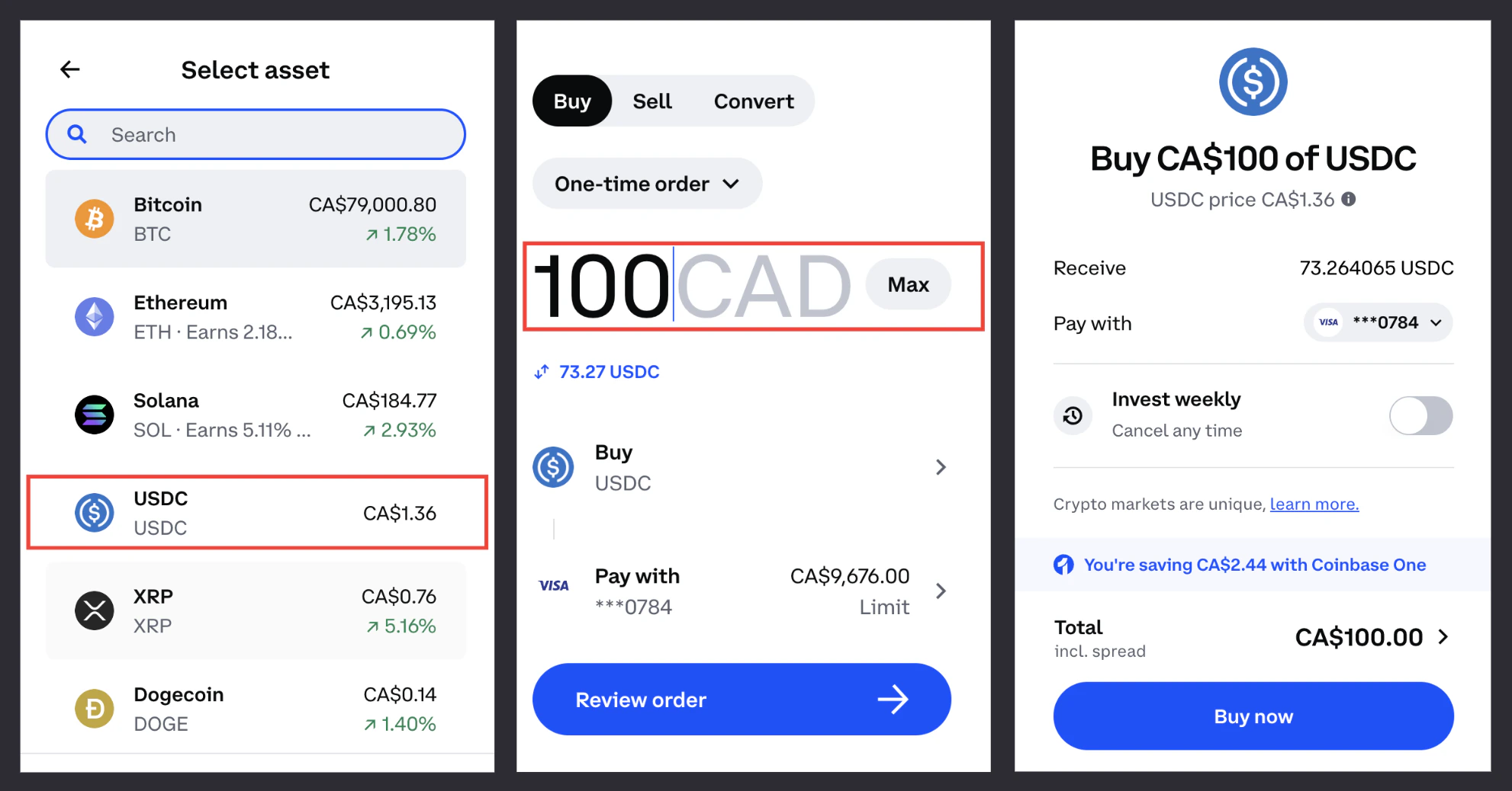 - Sign up or log in to Coinbase (or another crypto exchange) — click on “Buy”, select USDC and input the amount you’d like to purchase. Confirm the transaction and payment details.