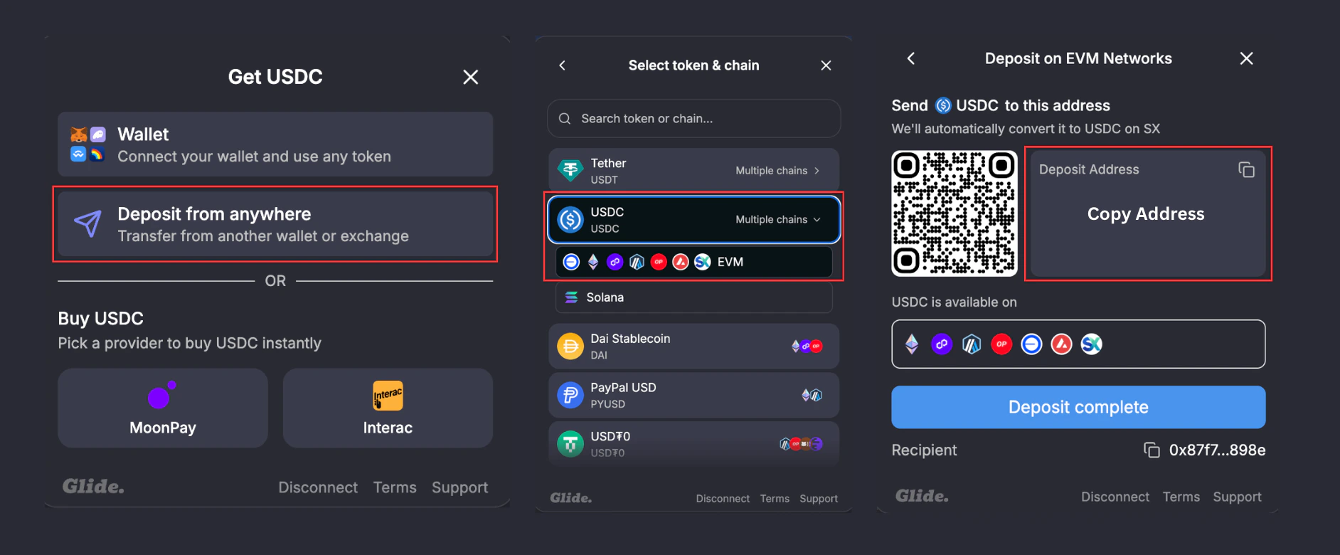 Yes — Glide generates a fresh transfer address each time you deposit. Sending funds to the address you were provided for a previous deposit will cause a delay in your deposit. Only transfer your funds to the deposit address provided for this specific session.