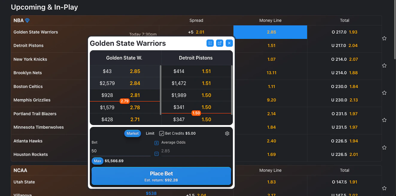 Bet credits allow you to place bets without using your own funds. If you win, you keep the winnings, but not the original bet amount.Market Orders