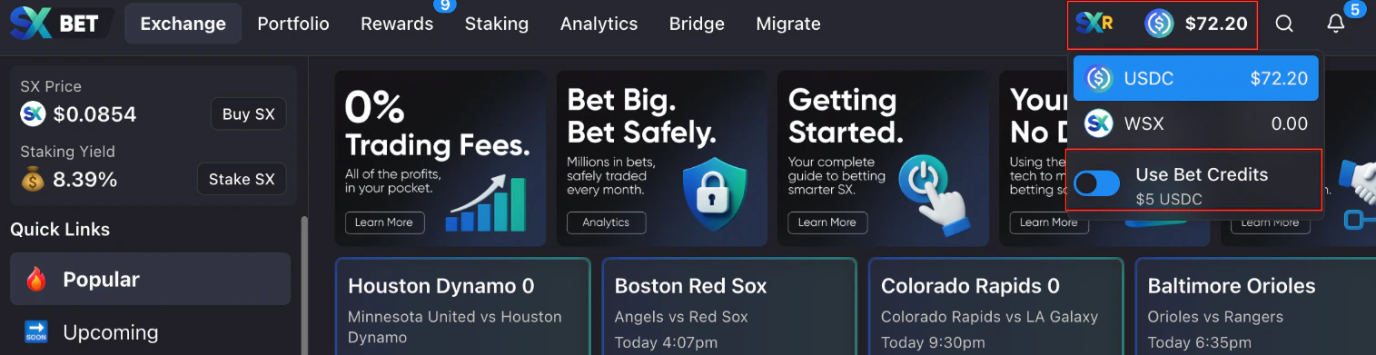 - Click the currency tab on the menu then click the “Use Bet Credits” toggle switch, and start using your bet credits. You can also check the “Use Bet Credits” checkbox from within your bet slip.