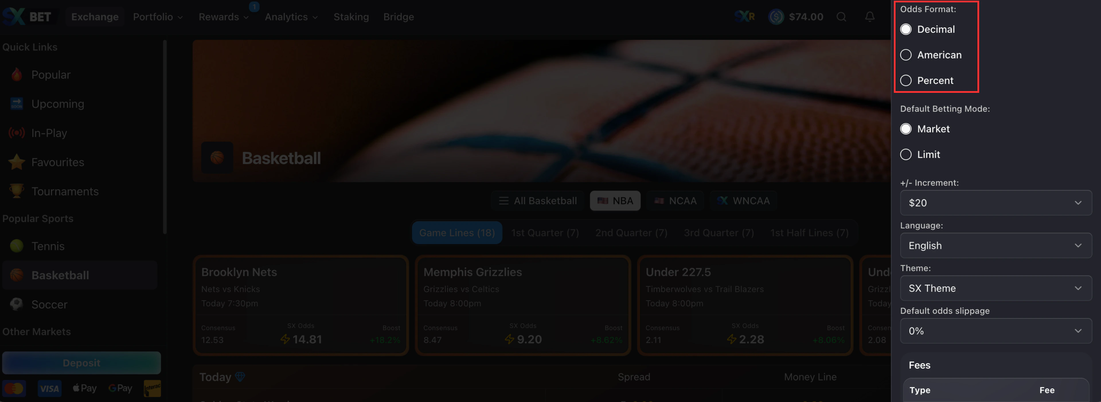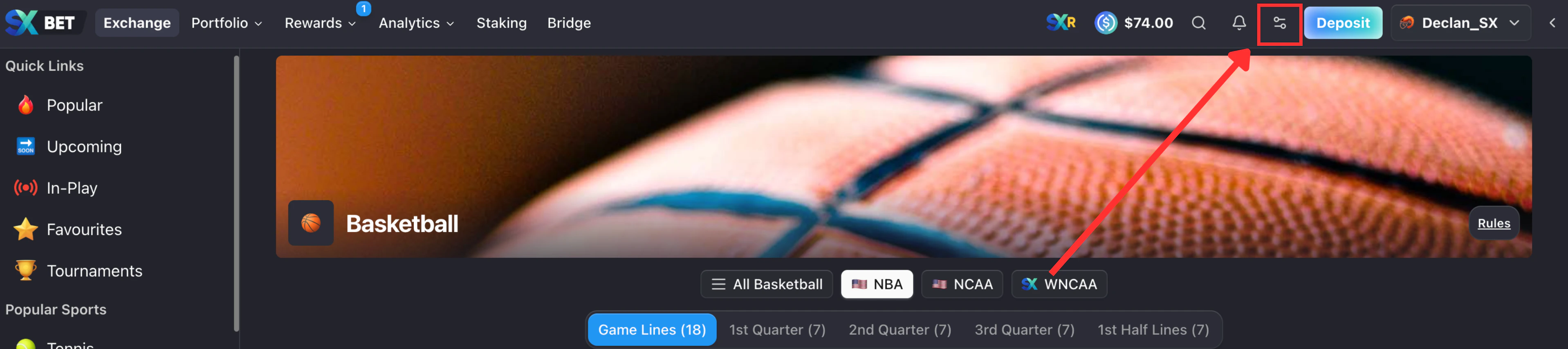 SX Bet supports decimal, American, and fractional odds — whichever you switch to will apply across the whole site.The Consensus Line