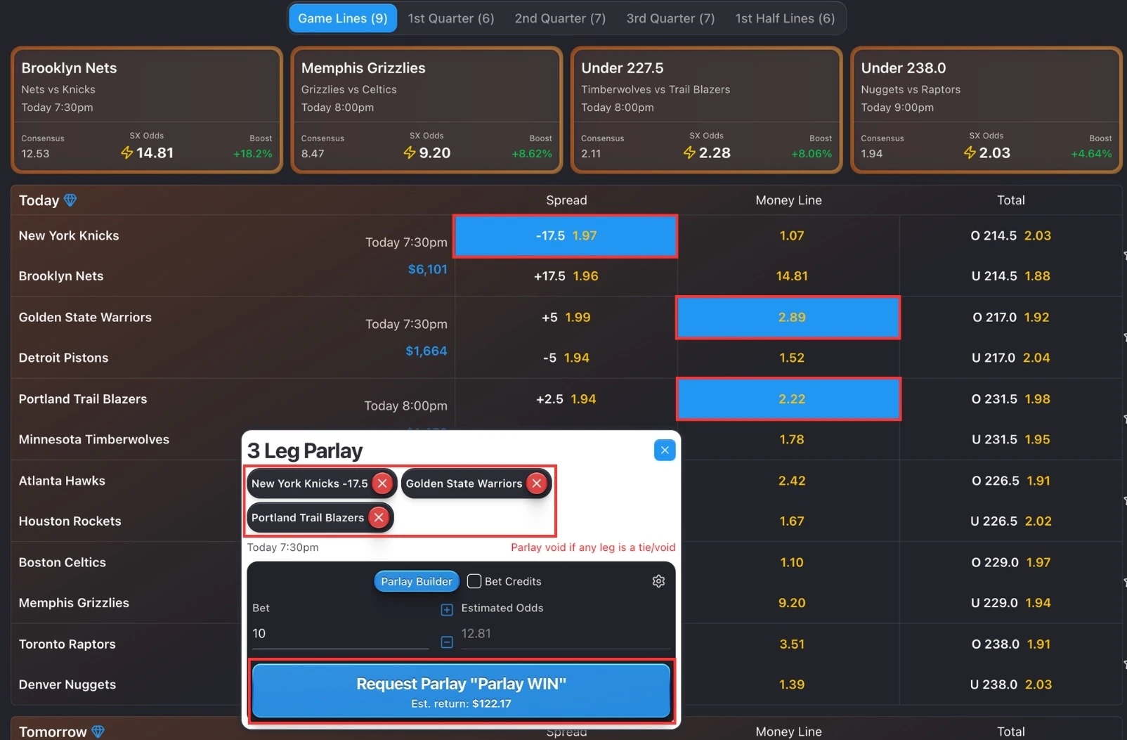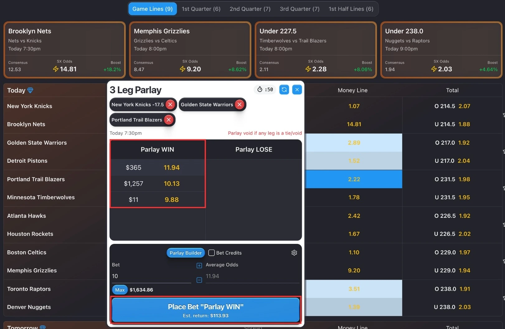 - Submit your parlay and place the bet within 60 seconds before the order book closes.
